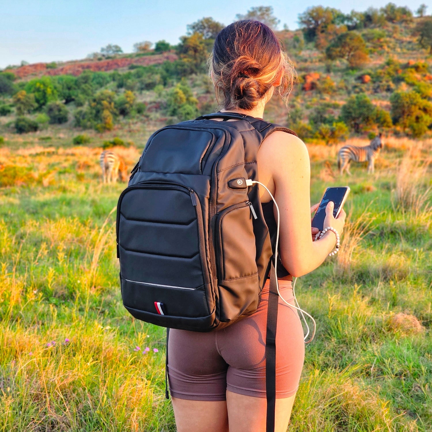Stay connected on your travels with our integrated USB charger, complete with a built-in charging cable for on-the-go charging.