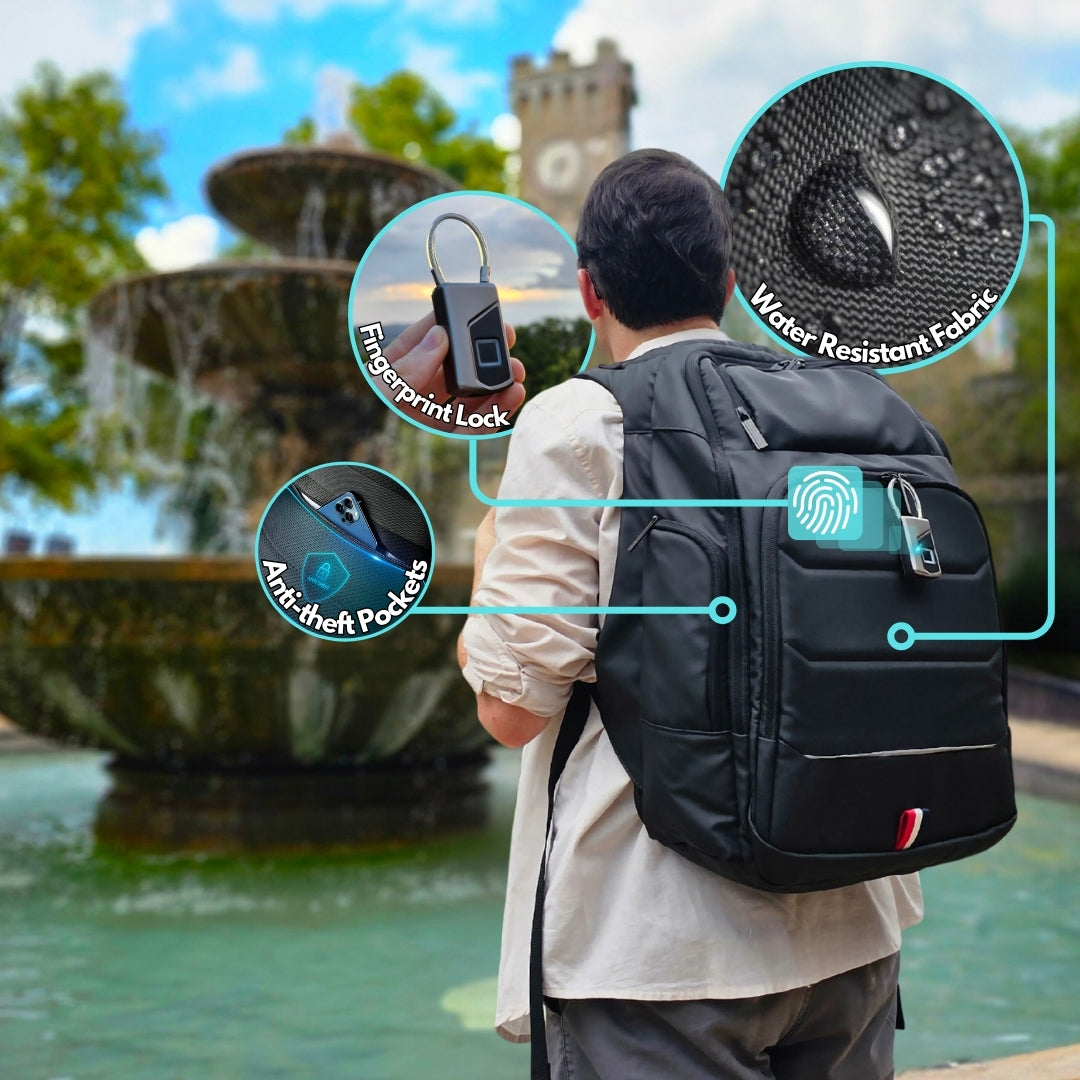 Protect your laptop and electronic devices with our highly padded anti-theft compartment. Unlockable only when the bag's off your back.