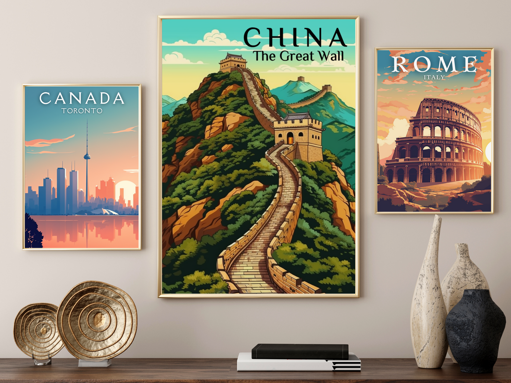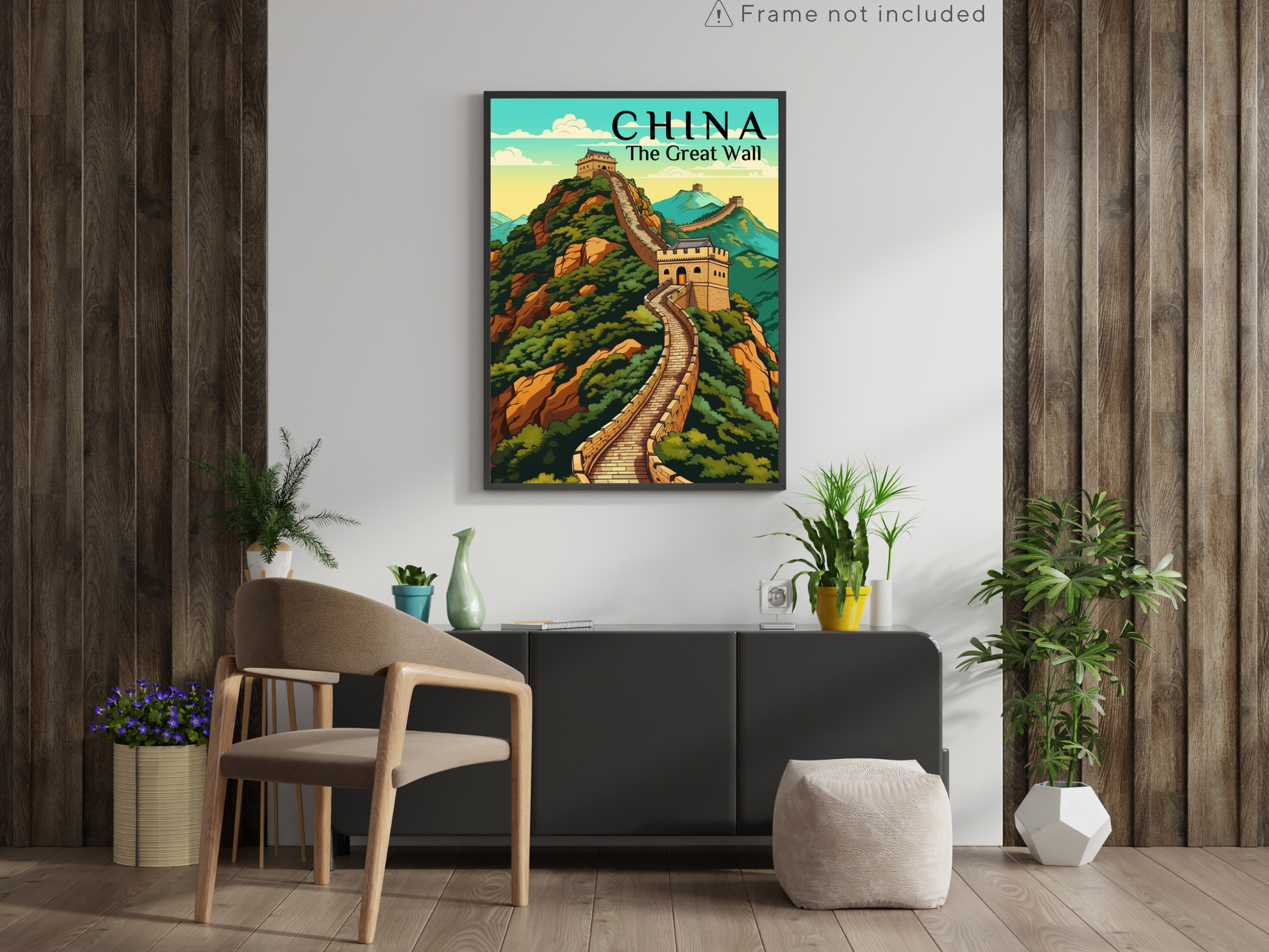 Capture the grandeur and magnificence of one of the world's most iconic wonders with our captivating digital poster. Behold the awe-inspiring sight of The Great Wall of China, its ancient walls gracefully winding around the hills and stretching into the distance. Immerse yourself in the rich history and architectural marvel of this legendary landmark. With every detail thoughtfully designed, our poster perfectly encapsulates the grand scale and historical significance of The Great Wall.