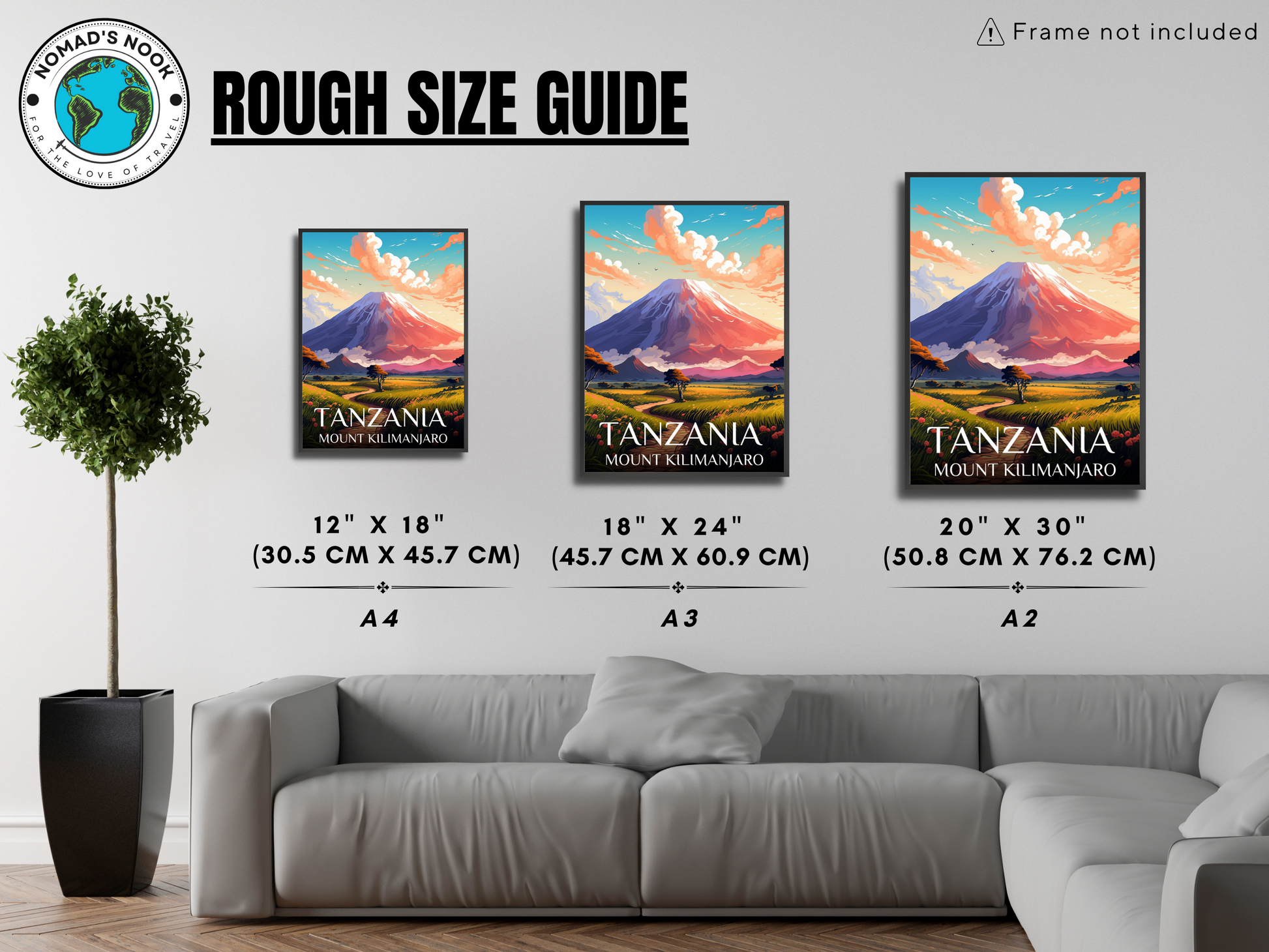 Experience Tanzania's stunning beauty with our satin-finished travel poster. Featuring a picturesque landscape with Mount Kilimanjaro at sunrise, this elegant artwork captures the essence of East Africa's natural wonders. Hang it in your home or office and let the enchanting landscapes of Tanzania inspire your sense of adventure.
