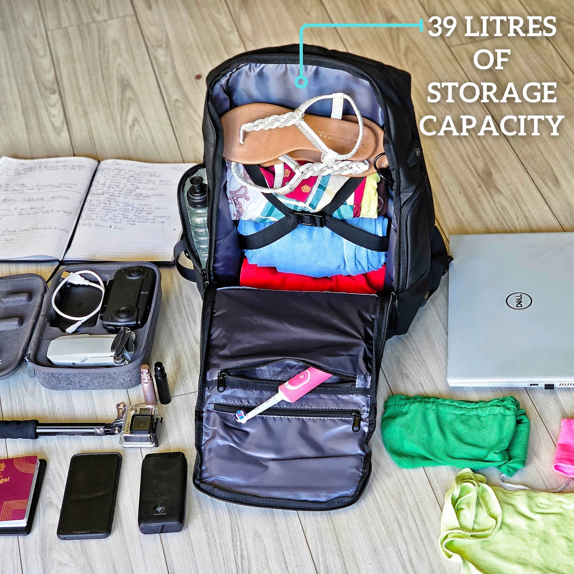 With 39 litres of storage space and our clever multi-layered design you no longer need to compromise on what travel essentials make the cut for your upcoming journey.